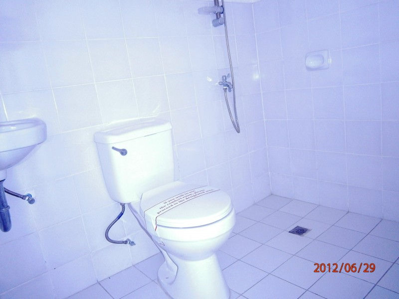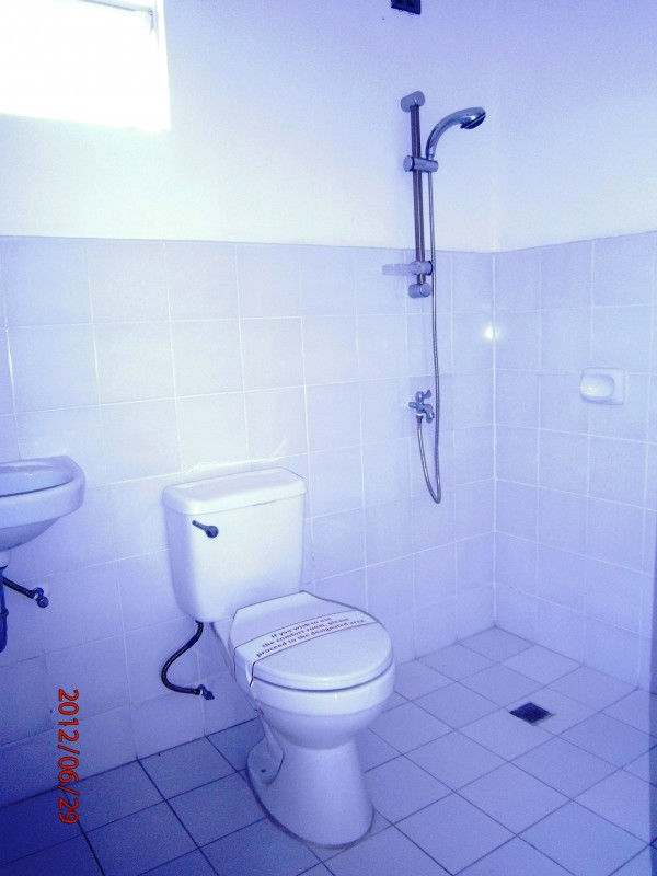 Tiled Toilet and Bath with Complete Set of Bathroom Fixtures